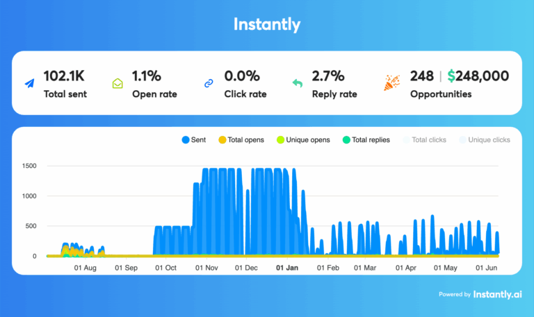 Outbound success is data-driven. Track open rates, replies, and meetings booked.