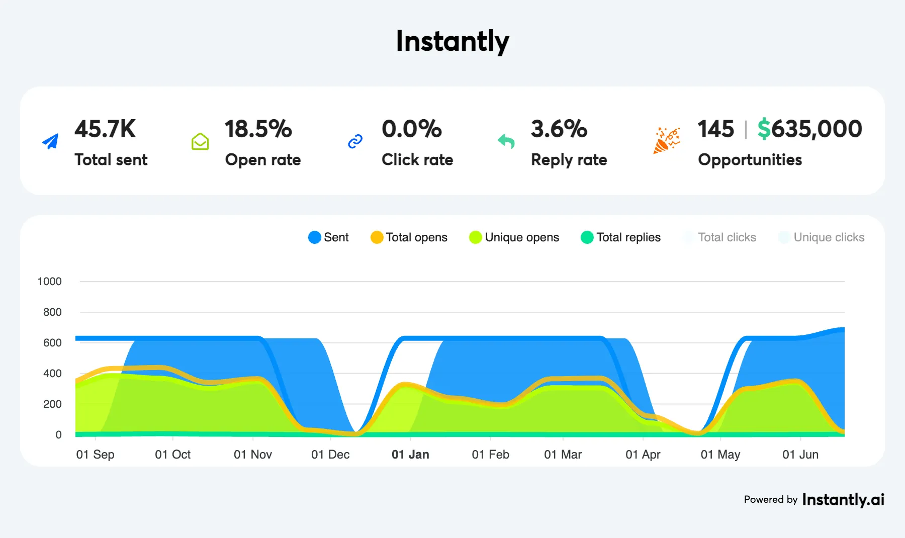 With an estimated total campaign value of $635,000 generated from 145 opportunities, this cold email campaign demonstrates significant return on investment potential. The best-performing segment alone generated $184,000 in estimated value from just 2,166 emails sent, showcasing the scalability of well-executed cold email strategies.