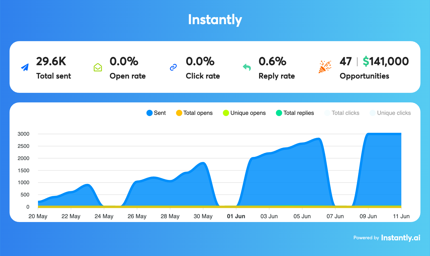 - Reply Rate: 0.6% (178 replies)